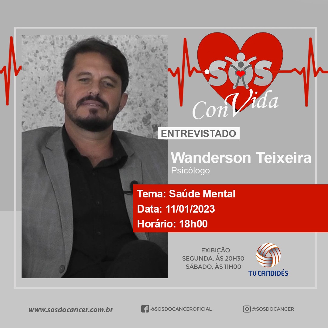 Cuidar do psicológico e do físico são fundamentais para o bem-estar. Neste mês é celebrado o Janeiro Branco, que busca chamar a atenção das pessoas para as necessidades relacionadas à saúde mental, a depressão e o cuidado com os sentimentos. A vida pede equilíbrio diante de mudanças cada vez mais desafiadoras e aceleradas que exigem novas atitudes, novas habilidades, novos entendimentos e novos comportamentos. No Programa SOS ConVida de hoje, o psicólogo Wanderson Teixeira, @wanderson_psicologo, aborda esse tema de uma maneira clara para entendermos que uma humanidade mais saudável pressupõe respeito à condição psicológica de todos!