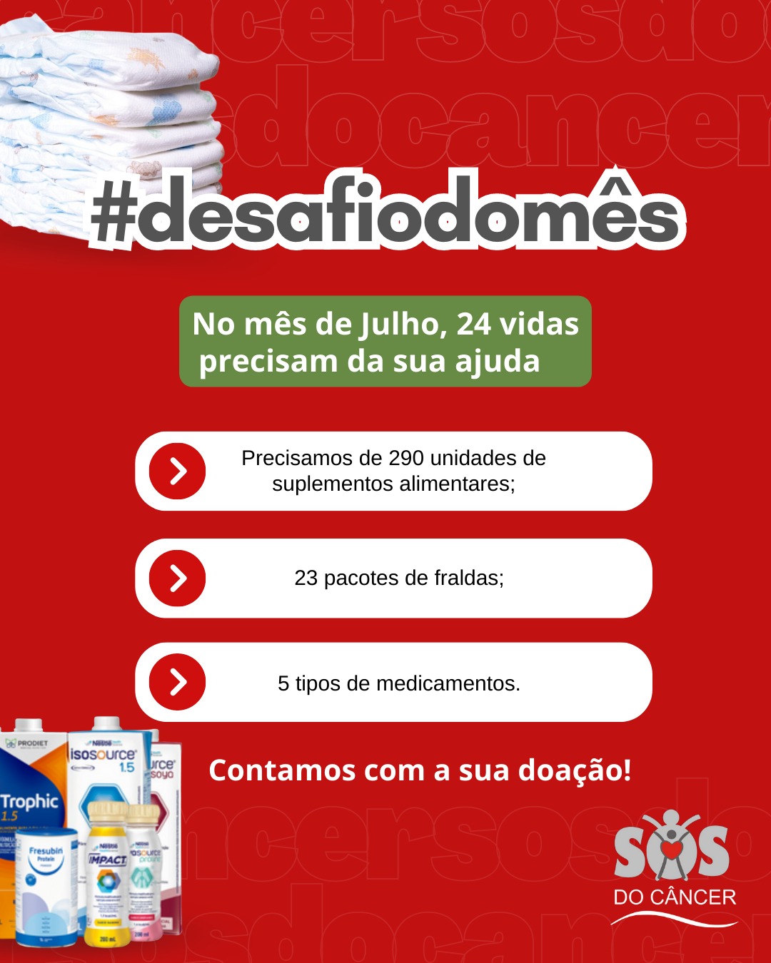 Neste mês de Julho a SOS do Câncer terá um grande desafio;