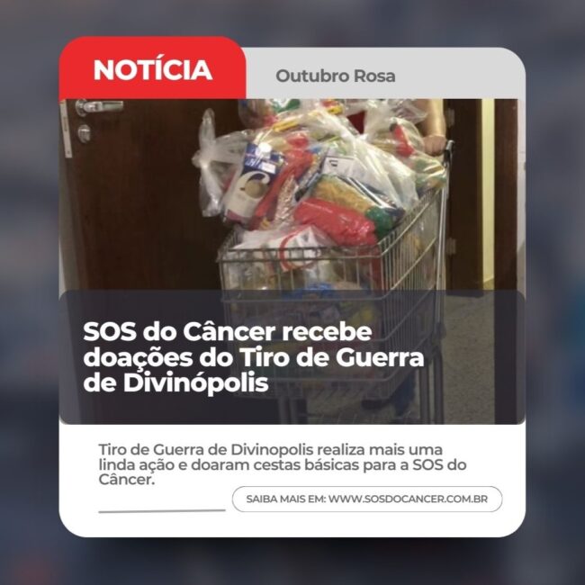 E para encerrar a semana com o coração transbordando de alegria, gostaríamos de agradecer ao Tiro de Guerra de Divinópolis-MG @tg04019_exercitobrasileiro que realizaram mais uma linda ação e doaram cestas básicas para a SOS do Câncer. Graças a essa boa ação, muitas famílias receberão o alimentos em suas casas. Obrigada por acreditarem na força da solidariedade e…